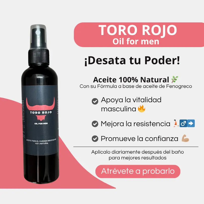 Descubre TORO ROJO, aceite 100% natural diseñado para el hombre que busca más fuerza, volumen y resistencia a la hora de la acción.